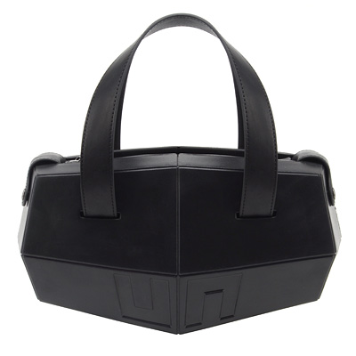 The United Nude Stealth Bag, like the wedge shoe in the same family is inspired by the straight lines of the Stealth F-117 fighter plane.